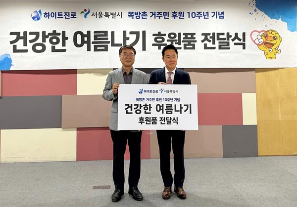 하이트진로는 26일 서울시청에서 ‘쪽방촌 거주민 후원 10주년 기념 건강한 여름나기 후원품 전달식’을 가졌다.