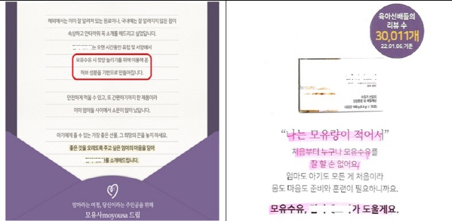 그중 침출차를 부당광고해 판매한 ▲주식회사 모유사(경기 고양시), ▲휴먼앤휴먼(경기 김포시) ▲주식회사 바비즈코리아(서울 금천구) ▲한국모유수유정보센터(경기 수원시)는 지난 2020년 6월부터 최근까지 침출차 제품 또는 침출차의 주원료(민들레 등)가 산모의 모유 ‘증량’, ‘감량’, ‘젖몸살’ 개선 등에 효과가 있는 것처럼 거짓 광고해 인터넷 쇼핑몰, 산후조리원, 임산부 마사지숍 등에 총 6만 1892상자, 21억원 상당을 판매했다.