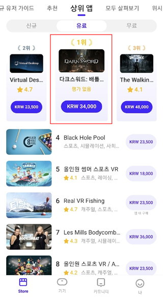 (서울=NSP통신) 이복현 기자 = 컴투스(대표 이주환) 자회사 컴투스로카의 신작 VR(Virtual Reality) 게임 ‘다크스워드: 배틀 이터니티(이하 다크스워드)’가 PICO 글로벌 스토어 출시 하루 만에 전체 유료 앱 순위 1위를 차지했다.