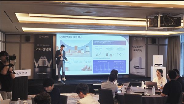 (서울=NSP통신) 이복현 기자 = 에코백스가 오늘(30일) 조선 팰리스 서울 강남에서 기자간담회를 개최하고 “청소기업체가 아닌 로봇가전업체로 성장하겠다”라고 밝혔다.