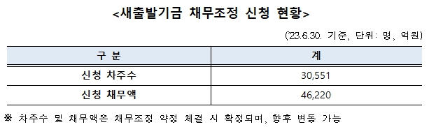 (서울=NSP통신) 정의윤 기자 = 소상공인·자영업자 대상의 ‘새출발기금’ 채무조정 신청에 3만명을 돌파한 가운데 채무액도 4조6000억원을 넘어섰다.