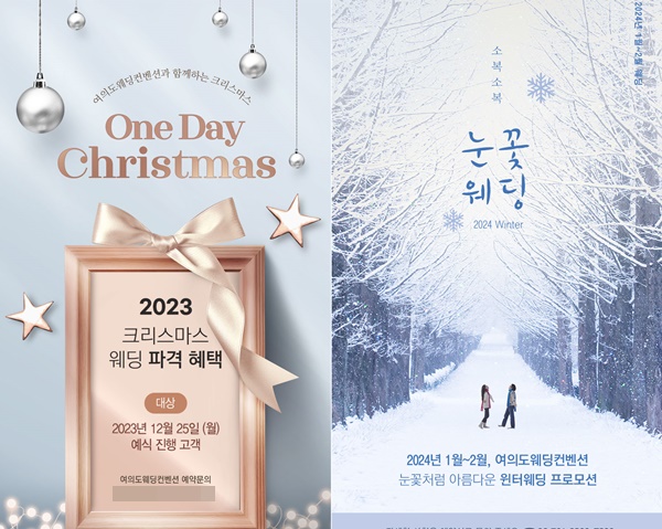 또 내년 1, 2월 결혼식을 갖는 예비부부들을 위한 ‘소복소복 눈꽃 웨딩 2024’ 프로모션도 진행한다. 사전계약으로 이 기간 결혼식을 올리는 예비부부들에게도 할인 등의 여러 혜택이 제공된다.