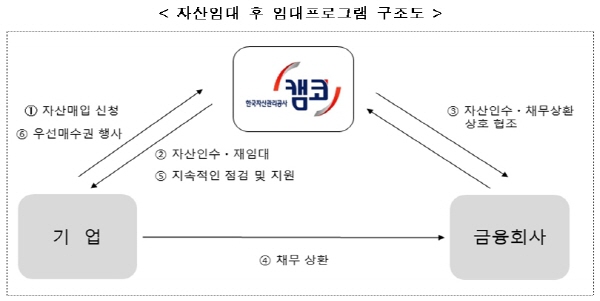 ‘자산매입 후 임대 프로그램’은 일시적 경영애로를 겪고 있는 중소·중견기업의 공장·사옥 등 자산을 매입 후 재임대하여 신속한 경영정상화를 지원하는 프로그램이다.