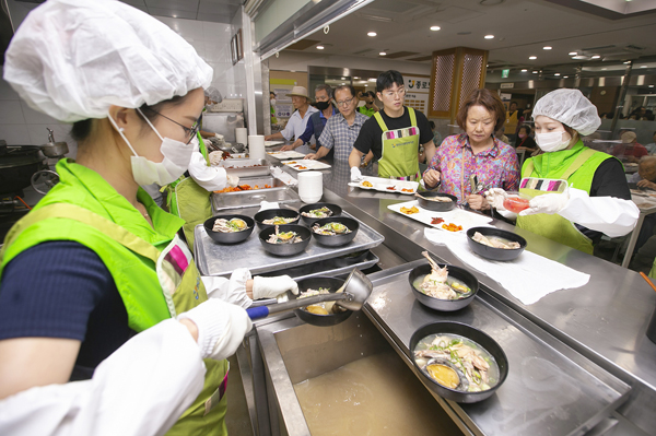 (서울=NSP통신) 이복현 기자 = KT가 광화문One팀 봉사단과 함께 초복을 맞아 종로노인복지관을 이용하는 어르신을 찾아가 광화문One팀이 정성껏 만든 전복삼계탕을 제공했다.