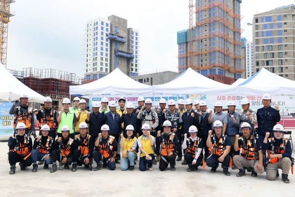SH공사는 공사가 관리하는 공동주택 건설공사장에서 ‘2023년도 폭우 및 폭염 대비 건설현장 모의훈련 및 안전·청렴 캠페인’을 개최했다고 밝혔다.