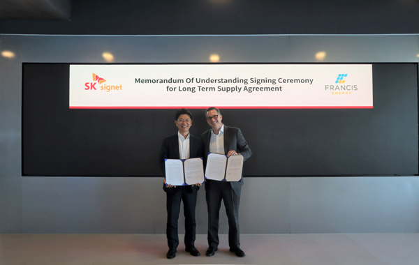 SK시그넷은 프란시스 에너지와 지난 해부터 협상을 시작해 23년 7월, 2027년까지 최소 1000기 이상의 400kW급 초급속 충전기를 5년간 공급하는 장기계약을 체결했다.