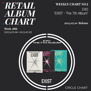 써클차트가 17일 공개한 2023년 28주차(07.09~15) 리테일 앨범차트에 따르면 엑소는 지난 10일 발매한 일곱 번째 정규 앨범 ‘EXIST’(엑지스트)가 집계 기준이 되는 한 주 동안 85만4007장의 가장 큰 판매량을 보여 왕좌에 올랐다.