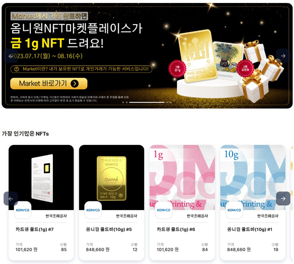 옴니원 NFT 마켓플레이스는 라온시큐어의 옴니원 블록체인 기술로 구축된 실물 기반 NFT 마켓플레이스다.