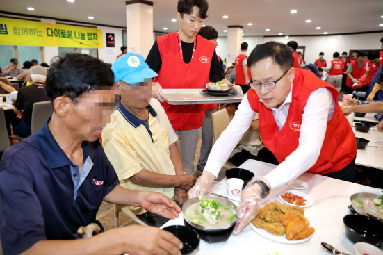 19일 하림 임직원 ‘사랑나눔실천단’은 지역 어르신 450여 명을 모시고 손수 준비한 삼계탕과 치킨 등을 대접하며 무더위로 지친 몸에 조금이나마 힘이 되길 바라는 뜻을 전했다.