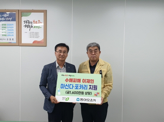 동아오츠카 관계자는 “이번 폭우로 피해 입은 지역 주민들의 아픔을 위로하고 어려움을 겪고 있는 분들에게 작은 힘이 보태졌으면 한다”라고 전했다.