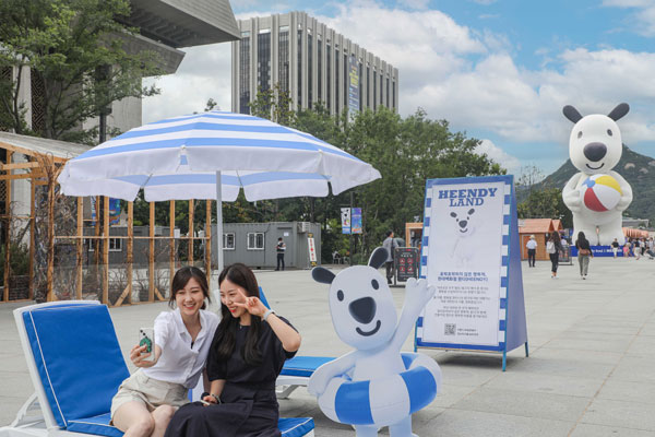 (서울=NSP통신) 이복현 기자 = 현대백화점이 다음달 13일까지 광화문광장에서 진행중인 흰디랜드에서 15m 높이의 비치발리볼 공을 든 대형 흰디를 비롯해 푸드트럭과 플리마켓 등 다채로운 먹거리·즐길 거리를 제공한다.
