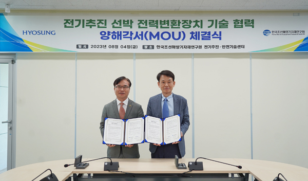 효성은 KOMERI와 전기추진 선박용 전력변환장치 개발을 위한 MOU를 체결했다.