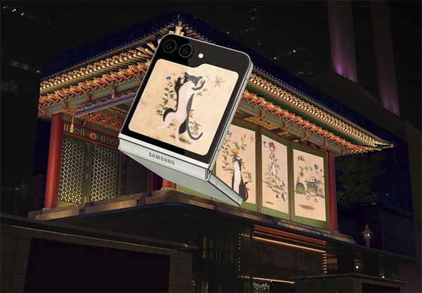 신사임당의 ‘초충도(草蟲圖)’를 모티브로 제작된 이 영상은 병풍 속 고양이가 갤럭시 Z 플립5를 터치하면 실제 제품이 튀어나오는 듯한 3D 효과로 폴더블 스마트폰의 혁신성을 몰입감 있게 표현했다.