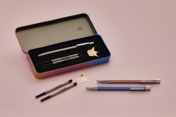 또 바디는 메탈 재질로, 볼펜 양 끝은 황동 재질에 크롬을 도금해 고급스러움을 강조했으며, 상단 헤드를 돌리면 볼펜심이 나오는 트위스트 방식을 적용했다.