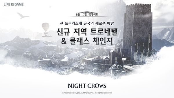 (서울=NSP통신) 이복현 기자 = 위메이드(대표 장현국)가 서비스하고 매드엔진(공동대표 손면석, 이정욱)에서 개발한 대작 나이트 크로우에 대규모 업데이트를 17일 진행한다.