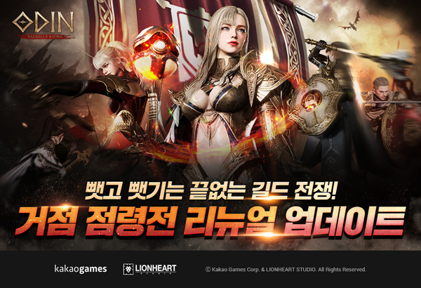 (서울=NSP통신) 이복현 기자 = 카카오게임즈(대표 조계현)가 라이온하트 스튜디오(의장 김재영)에서 개발한 대작 MMORPG 오딘: 발할라 라이징(이하 오딘)에 거점 점령전을 개편했다.
