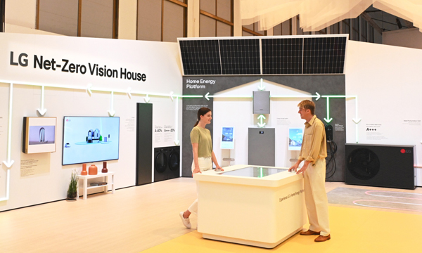 LG전자는 넷제로 비전 하우스 전시존에서 LG씽큐 앱을 통해 고효율 가전의 제어는 물론 가정에서 사용하는 에너지를 효율적으로 모니터링하고 에너지 절약에 기여할 수 있는 ‘홈 에너지 플랫폼(Home Energy Platform)’을 체험할 수 있도록 준비했다.