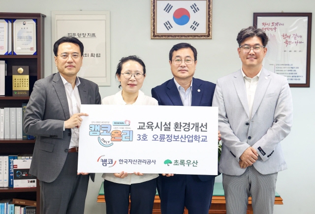 (서울=NSP통신) 정의윤 기자 = 한국자산관리공사(사장 권남주, 캠코)는 지난 5일 부산 오륜정보산업학교에서 학교 내 직업교육 시설의 성공적 개보수를 기념한 ‘캠코온리3호점 현판식’을 가졌다고 6일 밝혔다.