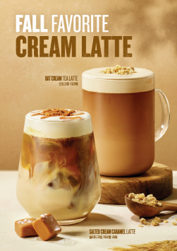 신제품은 달콤한 카라멜 라떼에 짭조름한 크림을 올려 단짠 매력을 극대화 한 ‘솔티드크림 카라멜 라떼’, 홍차베이스에 오트 음료와 크림을 더해 부드럽고 고소한 맛을 느낄 수 있는 ‘오트크림 티라떼’ 등 2종이다. 이번에 처음 선보이는 ‘오트크림 티라떼’는 건강하고 다양한 선택지를 원하는 소비자들을 위해 식물성 원료인 오트 음료와 크림을 활용했다.