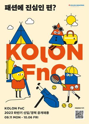 코오롱FnC의 인사팀 한학규 팀장은 “코오롱FnC는 패션과 문화가 공존하는 명실상부 우리나라의 대표 패션 기업”이라며 “코오롱FnC와 함께 트렌드를 이끌고 함께 성장해 나갈 많은 패션 인재들의 지원을 기다린다”라고 밝혔다.