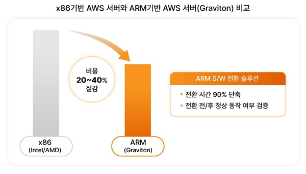 SKT가 이번에 출시한 솔루션은 상대적으로 전력 소비가 높은 인텔·AMD기반 서버에서 저전력, 고효율 CPU인 암(ARM) 기반 서버로의 이전을 지원해 운용비용을 20%에서 최대 40%까지 절감할 수 있다.