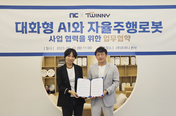 엔씨는 자율주행로봇 전문기업 트위니와 ‘로봇 제어 솔루션’ 연구개발 등 포괄적 업무 협약을 담은 양해각서(MOU)를 체결했다.