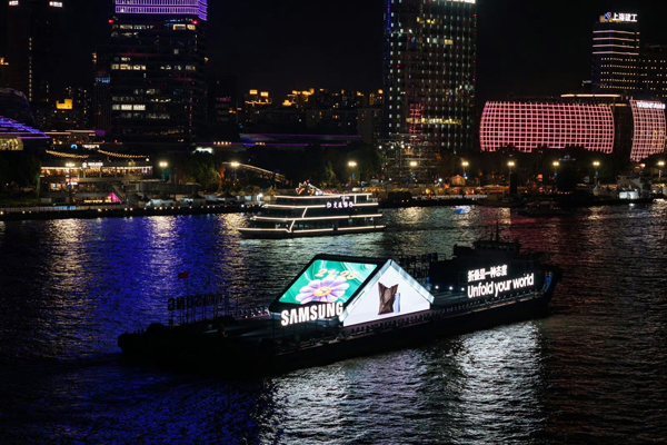 삼성전자는 지난 8일 중국 상하이에서 LED로 제작된 약 70m 길이의 갤럭시 Z 플립5 조형물 선박을 제작하고 선상 마케팅을 진행했다.
