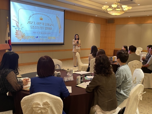 도교육청은 18일 영암 현대호텔에서 22개 교육지원청 유아교육 담당 장학사, 시·군청 보육 업무 담당자 등 50명이 참석한 가운데 유·보 업무 담당자 연찬회를 실시했다.