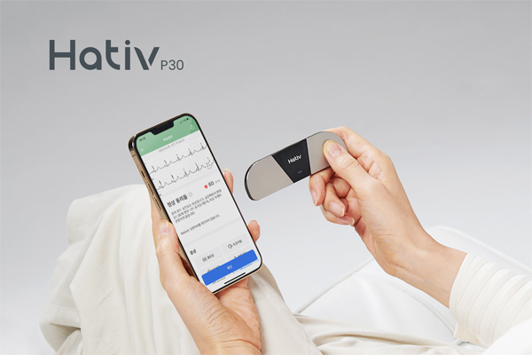 하티브 P30은 심전도 데이터를 분석해 정상동리듬, 심방세동 또는 조동, 심방조기박동, 심실조기박동, 서맥, 빈맥 등 분석 결과를 제공하는 가정용 심전도 측정 의료기기다. 작고 휴대가 간편해 언제 어디서든 30초 내 간단하게 심장 신호를 측정할 수 있는 것이 특징이다. 분석 결과는 연결된 모바일 앱 ‘하티브케어’를 통해 한 눈에 확인할 수 있다.