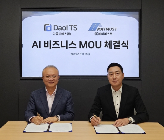 다올TS는 AI 전문업체 메이머스트와 지난 18일 경기도 하남시 미사대로 메이머스트 하남지사에서 양해각서(MOU)를 체결하고, 상호 간의 성공적인 사업협력에 나서기로 했다.