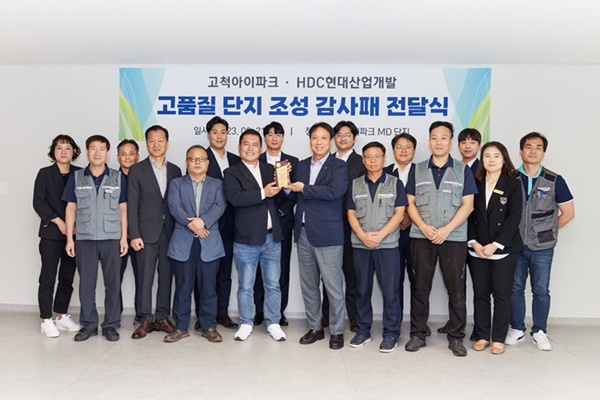 지난 21일 고척아이파크 입주자대표회의는 커뮤니티센터에서 적극적인 유지관리 서비스와 AS지원으로 입주민들의 불편을 최소화하기 위해 힘써준 HDC현대산업개발에 감사패를 수여했다.