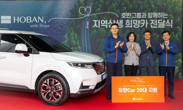 (서울=NSP통신) 강은태 기자 = 호반그룹이 지역사회와 이웃을 위해 전국의 사회복지단체에 희망카 20대를 전달했다.