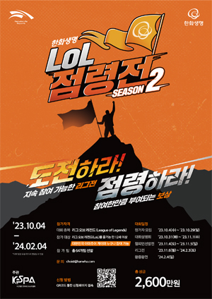 (서울=NSP통신) 이복현 기자 = 한국e스포츠협회가 한화생명e스포츠와 함께 ‘한화생명 LoL 점령전’을 진행한다.
