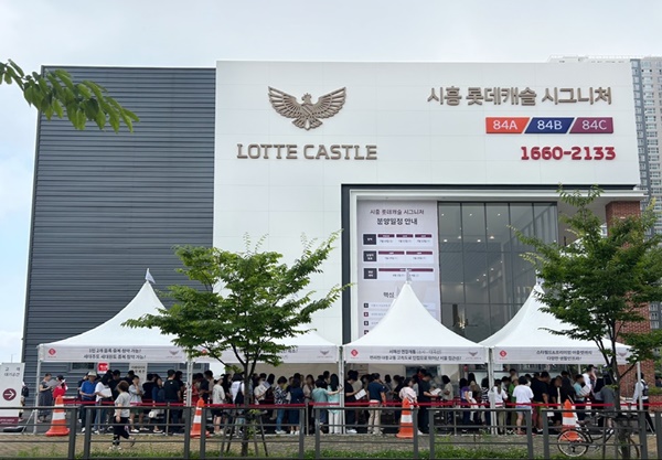 2개 블록, 총 2133세대 규모 대단지로 조성된 ‘시흥 롯데캐슬 시그니처’는 견본주택 오픈 이후 3일 간 총 1만 5000여 명의 수요자가 방문했으며 오픈 기간 내내 입장을 위한 대기줄이 길게 형성된 바 있다.