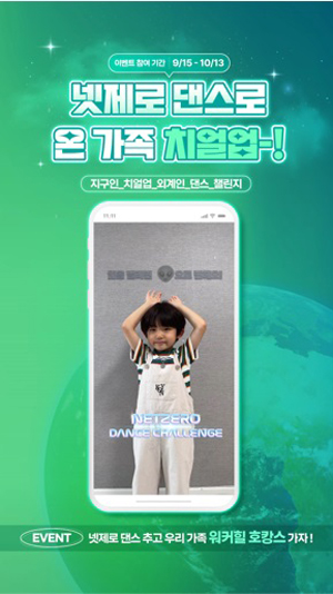 참여 방법은 인스타그램 필터 기능을 사용해 넷제로 댄스 영상을 촬영하고, 친환경 다짐 메시지를 담아 개인 계정에 올리면 된다.