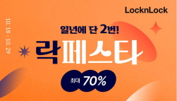 락페스타는 일년에 딱 2번 펼쳐지는 락앤락의 최대 할인 프로모션 행사로, 락앤락몰과 전국 가맹점에서 1300여개 생활용품을 최대 70% 할인가에 만나볼 수 있다. 이번 프로모션을 통해 락앤락의 주력 제품군인 식품보관용기, 베버리지웨어(텀블러·물병), 쿡웨어(주방용품), 소형가전은 물론이고, 가을 시즌에 활용하기 좋은 여행, 김장, 수납 등 맞춤형 생활용품을 한자리에 모아 선보인다.