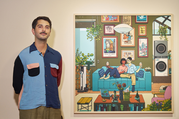 전시장을 찾은 고객은 ▲LG 트롬 워시타워와 코드제로 A9S 무선청소기가 설치된 집안에서 젊은 커플이 편안하게 소파에 앉아 와인을 마시는 ‘긴장을 풀고, 마시고, 사랑하라(Relax, Drink and Love)’ ▲양탄자 위에서 퓨리케어 에어로타워의 쾌적하고 기분 좋은 바람을 맞으며 휴식을 취하는 ‘오후 휴식(Afternoon Break)’ ▲디오스 얼음정수기냉장고와 가스오븐레인지를 갖춘 주방에서 가족이 아침 식사를 준비하는 ‘상쾌한 하루를 위한 시작(A Fresh Start to a Fresh Day)’ 등 LG전자와 일리야 밀스타인이 협업한 세 작품을 포함한 100여점의 작품을 감상할 수 있다.
