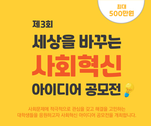 올해로 3회째를 맞는 ‘사회혁신 아이디어 공모전’은 기후변화‧청년문제‧지역사회 등 다양한 사회문제에 관심 갖고 고민하는 혁신 인재를 발굴해 육성하는 프로그램이다.