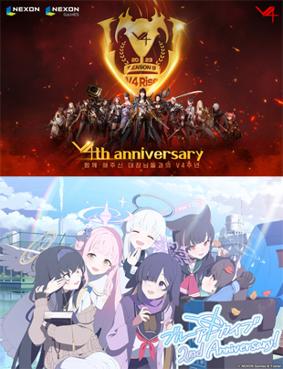 ◆V4 감성 가득 OST, 블루 아카이브는 한일 흥행 질주 = 2019년 11월 출시 후 애플 앱스토어 및 구글 플레이 스토어에서 각각 최고 매출 1위와 2위를 기록한 흥행작 V4는 출시 이듬해인 2020년 ‘대한민국게임대상’에서 대상을 차지하며 작품성과 흥행성을 인정받았다. 이후에도 줄곧 다채로운 신규 클래스, 지역 및 무기를 선보이는 한편 각 시즌 단위로 새로운 시즌 패스와 장비가 운영되는 시즌제를 도입하는 등 풍성한 업데이트를 선보여왔다.