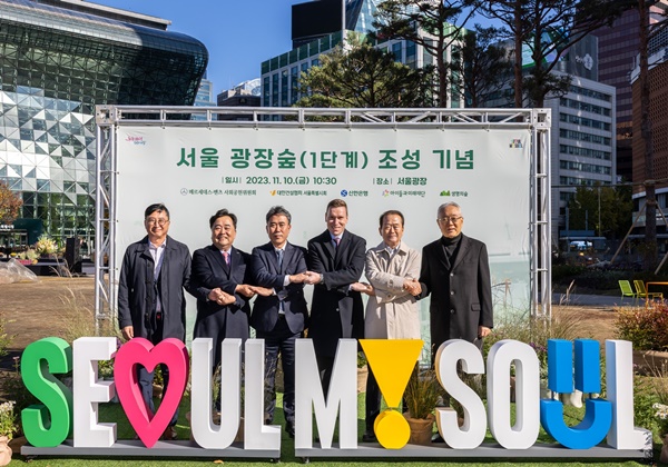 10일 오전 서울특별시 유창수 행정2부시장, 대한건설협회 서울특별시회 최태진 회장, 아이들과미래재단 이훈규 이사장, 메르세데스 벤츠 사회공헌위원회 마티아스 바이틀 의장 등 8명이 참석한 가운데 서울광장에서 진행된 준공식에서는 메르세데스 벤츠 사회공헌위원회 기증 소나무를 포함해 기업 및 단체에서 기증한 소나무 총 9그루가 전달됐다.