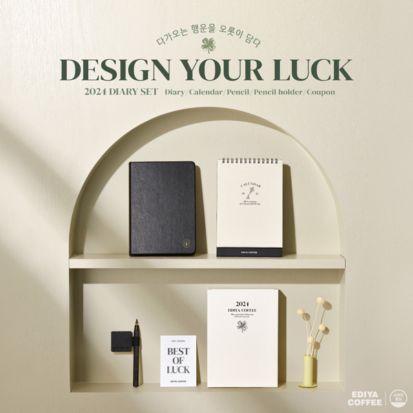 블랙&화이트톤의 컬러를 활용한 다이어리와 캘린더, 만년연필, 연필/펜 홀더, NEW 아메리카노 할인 쿠폰 등 실용성 높은 5종으로 구성됐다.