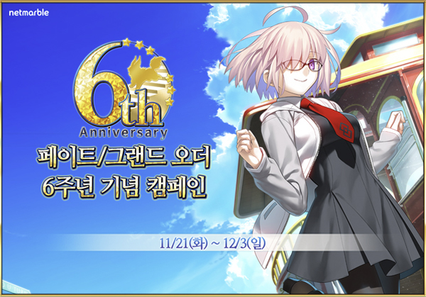 (서울=NSP통신) 이복현 기자 = 넷마블(대표 권영식, 도기욱)이 모바일 RPG 페이트/그랜드 오더(이하 페그오) 출시 6주년을 기념한 캠페인을 오는 12월 3일까지 실시한다.