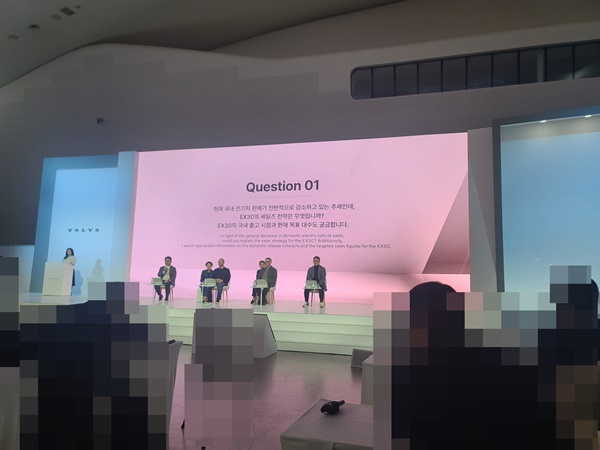 이에 NSP통신은 28일 볼보 EX30 미디어 공개 행사에서 진행된 자동차 담당 언론들과 볼보자동차 EX30 익스테리어 디자인 총괄 티 존 메이어(T. Jon Mayer), 볼보자동차 EX30 상품 개발 리더 요아킴 헤르만손(Joakim Hermansson), 볼보자동차코리아 이윤모 대표, 볼보자동차 세일즈마케팅 이만식 전무가 진행 했던 Q&A(질의응답) 내용을 공개한다.