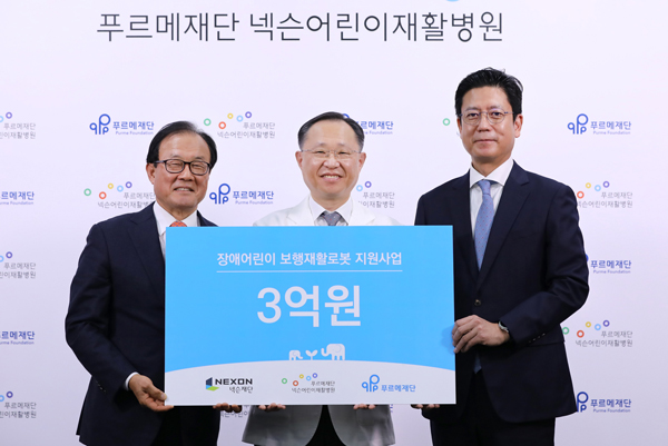 (서울=NSP통신) 이복현 기자 = 넥슨(대표 이정헌)이 푸르메재단 넥슨어린이재활병원에 로봇 재활치료 확대를 위한 운영기금 3억 원을 기부했다.