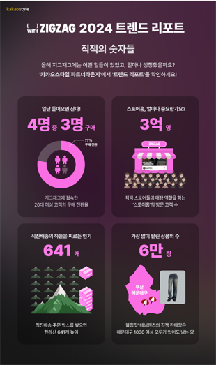 (서울=NSP통신) 이복현 기자 = 카카오스타일(Kakao Style, 대표 서정훈)의 스타일 커머스 플랫폼 지그재그가 ‘with지그재그 2024 트렌드 리포트(이하 트렌드 리포트)’를 발행하고 2024년 스타일 트렌드 키워드를 ‘NAMING+(네이밍 플러스)’로 제시했다.