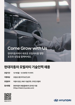 현대차는 차량 전동화 등 미래 산업 변화 트렌드에 적극 대응하기 위해 다양한 역량과 전문성을 갖춘 모빌리티 기술인력을 선발할 계획이다.