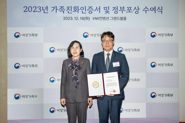 (서울=NSP통신) 이복현 기자 = KT&G(사장 백복인)가 구성원들의 일·가정 양립을 지원한 공로를 인정받아 여성가족부로부터 ‘가족친화기업’ 인증을 재획득했다.