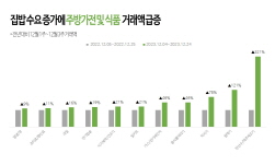 요리에 필요한 시간을 절약해줘 맞벌이 부부에게 특히 인기 있는 밀키트 카테고리의 거래액은 12월 같은 기간 전년 동기 대비 21%가 올랐고 과일 16%, 조미료/향신료 11%, 양념/장 9%씩 증가했다.