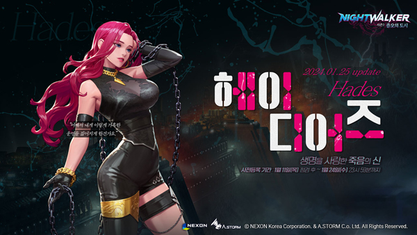 (서울=NSP통신) 이복현 기자 = 넥슨(대표 이정헌)이 에이스톰(대표 김윤종)에서 개발한 PC 액션 MORPG 나이트 워커(Night Walker)에 신규 캐릭터 ‘헤이디어즈’의 사전등록 이벤트를 실시한다.