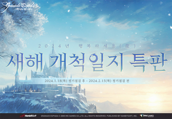 그라나도 에스파다 관계자는 “유저들께서 원하는 캐릭터 수집은 물론 아이템 세팅까지 준비하시고 새해를 활기차게 시작하시기를 기원한다”며 “그라나도 에스파다는 2024년 새해에도 유저 친화적 운영과 업데이트를 통해 끊임없는 만족감을 드리도록 더욱 노력하겠다”라고 밝혔다.